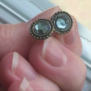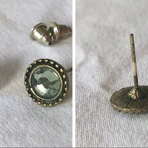 The third pair is a 9mm faceted crystal very light in color blue/green marcasite frame.