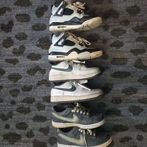 Trendy Nike sneakers for kids. Gray and white design. Ideal for active play. In used condition can be cleaned and brought back to life.