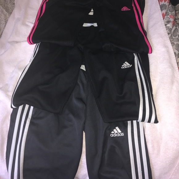 •Pink and Black- worn a lot but in great shape. String to make tighter is missing. •Black and White- Med. sized scratch on the left side pant leg but still very wearable. •Gray and Black- Good shape worn a number of times. (Will show pictures of actual pant if interested)