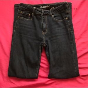 1st pair: Aeropostale high waisted dark denim jeans, size 4R which is equivalent to a size 3 if you're looking at it in the 1-3-5 etc. sizes. By itself it'll be $10. 2nd pair: Hollister dark denim low-rise jeans size 3S (S for short, I'm 5'3 and these fit me good), by itself it'll be $10. 3rd pair: Hollister medium-wash low rise denim jeans size 3R. Since this pair is not as new as the others, this will be $7 by itself. If you purchase ALL TOGETHER: $20! Bought these at about $30 each.