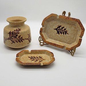3 pc mid century modern MCM Pottery Craft stoneware vase & ashtrays