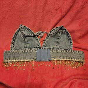 3 pc set - Jean Halter Top - Jean Shorts - White Top - Totally BLINGED OUT! SM