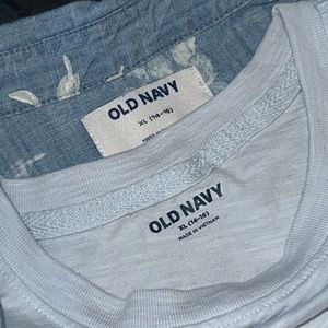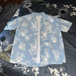 -Blue Hawaiian Buttoned down Colored Shirt S/S with a light blue S/S tee shirt ( which can be worn alone or with Hawaiian shirt and