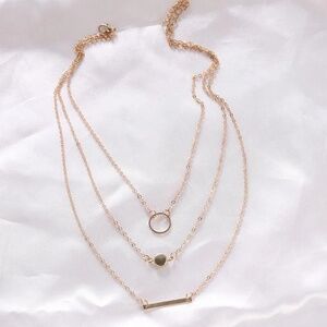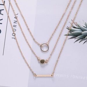 3 pendant Multilayered Style Necklace Gold plated