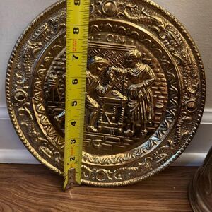 3 piece Brass pitcher set with 2 plates in almost perfect condition