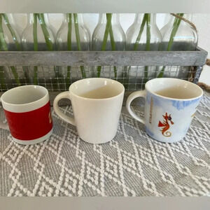 The 2 larger cups are 3oz. Marked 2004, 2014, and 2015. Great gift idea for the Starbucks lovers. 3 espresso cups.l with side handle. Siren and seahorse, Winning Together #6, Green Siren logo.