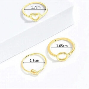 3 piece Gold Trendy Knot Circle & Heart Ring Set