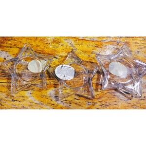 Never use still has Label and no wear or tear and no candle drips I have 3 of them in this set of lovely 3 layer star shaped Crystal Glass candle dish from Home Interiors which closed in 2008 so these are more likely vintage as I could not find a year made but before 2008 Made in Texas USA on the label Cool and they wont be made again! They are heavy 1 pound each size 4 inch by 3inch by 1inch deep. So lovely ! I do combine shipping should you like my other items and bid on these ! I will pack them well in bubble wrap, double boxed etc ! I will sell them as a set now but if they dont sell will list them separate Thanks for looking check my other listings and favorite me I have lots of treasures to sell!