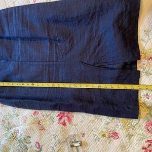 3 pice blue linen suit, short sleeve fully lined jacket and 2 different length pencil skirts. Both fully lined.