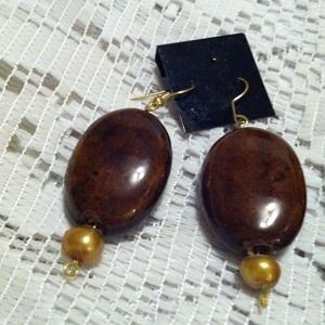 Chunky brown stones in various shades of brown. Gold accents. Lobster clasp on necklace and bracelet. 18 inches long