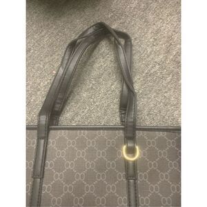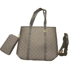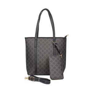 Unisex adult super cute monogrammed patterned vegan leather travel style 3 piece tote bag set. Features multiple interior pockets and compartments, and zippered closure. Includes matching wallet and detachable adjustable shoulder strap. New with tags. Approximately 15" width 12" height 2.5" depth. Shoulder strap is adjustable.