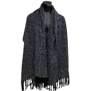 Emanuel Geraldo Black Gray large scarf wrap with black fringe