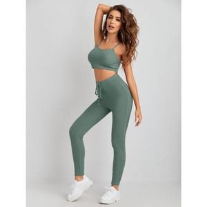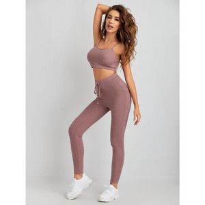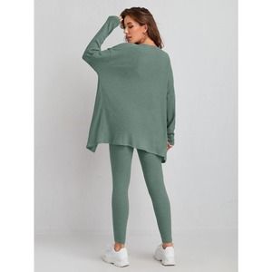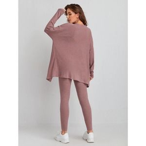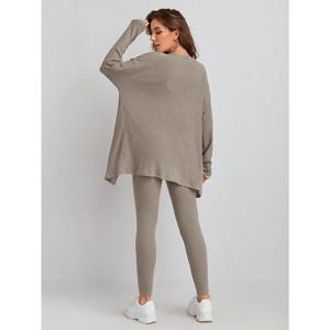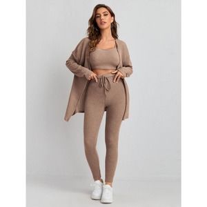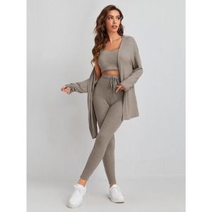 3 piece set: Waffle Knit Tank Top & Leggings & Coat cardigan tan gray