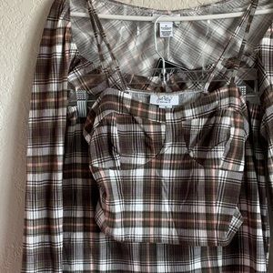Size Medium this 3 piece set is the cutest it can be worn with thigh highs and school girl platforms.