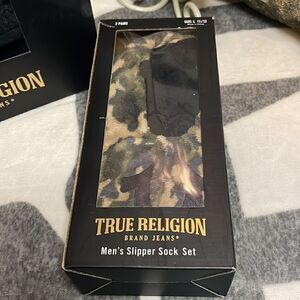 3 piece true religion jeans slippers & slipper sock set nib/nwt