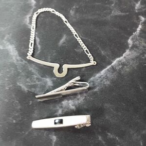 3 pieces - Silvertone Tie Bar & Chain Set Unbranded Classic Mens Accessories
