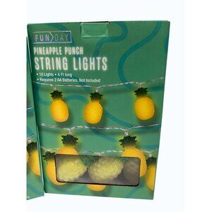 Illuminate any space with these playful pineapple-shaped string lights. Designed by Funday, the Pineapple Punch lights add a touch of tropical charm. Ideal for indoor or outdoor use, the 4-foot string includes 10 lights, requiring 2 AA batteries (not included). A delightful addition for themed parties or everyday ambiance.