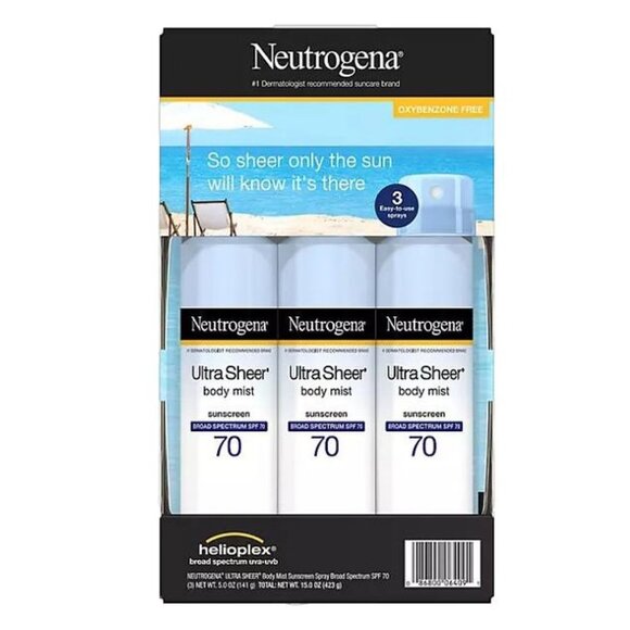 Neutrogena Ultra Sheer Body Mist Sunscreen Spray, SPF 70 (5 oz., 3 pk.)