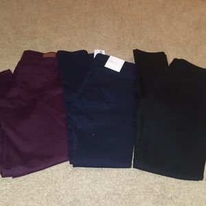 All 3 never worn. Navy ones have tags. Navy and black are size 10. Other color is size 29 regular.