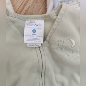 Halo sleep sacks, one fleece, one swaddle type muslin material and one cotton.