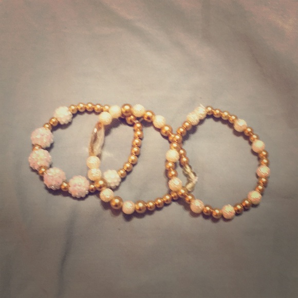 3 gold color beaded bracelets. They match but can be sold separately. $7 each or $15 for the 3.