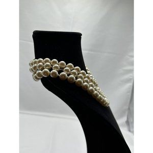3 strand Faux pearl necklace graduated With Gold Tone Closure