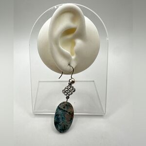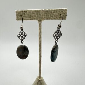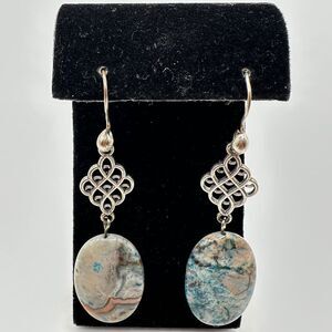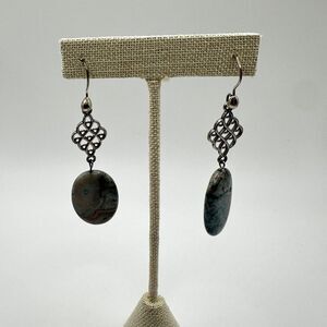 3" long earrings in a silver tone. I did acid test these and they did not come back as sterling silver. Possibly plated.