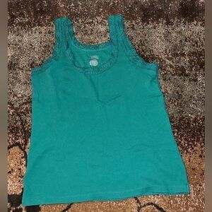 1. Converse One Star black tank top lacy trim around neck, arm opening and the bottom. Size L