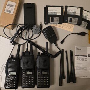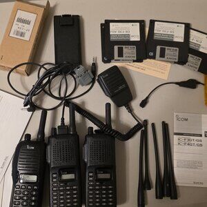 runs on AA batteries may not include due weight or can use Nicad 1 included no charger included speaker works but sold as is plan to reprogram for specific use. comes with program disks and cable note for older legacy systems unless you have a new one