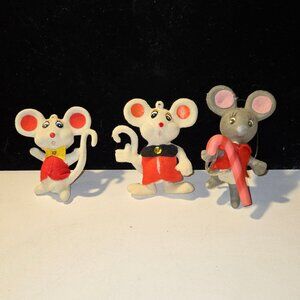 3 vintage Flocked Mice Mouse Christmas Ornaments