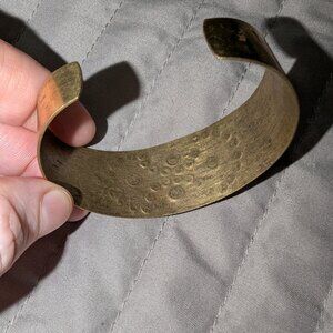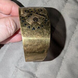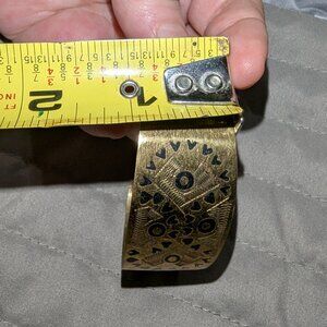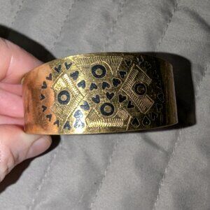 $3 with Bundle ~ Brass Cuff Bracelet Etched Hearts & Black Enamel Design 4550