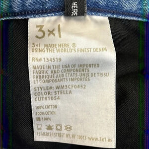 3 x 1 NYC Button Fly Fringed & Cropped Relaxed Fit Jeans in Stella - Size 27. Great pre-owned condition. I believe these had long fringe on the leg hems that was cut off by the previous owner. Still a short fringed raw hem with stitching to stop it from further fringing. Factory whiskering, button fly, cropped length, relaxed fit, medium wash. Approximate measurements: 15 1/2" waist, 9 1/2" rise, 24" inseam. 100% cotton so no stretch.