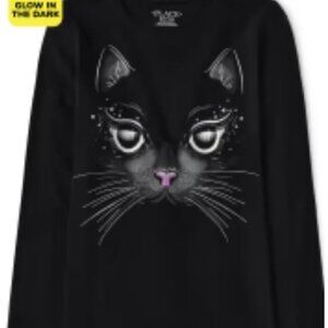 NWT The Children Place Girls Glow Cat Long Sleeve Black Graphic Tee