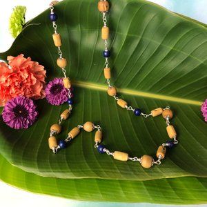 30 1/2" natural Tulasi with Lapis Lazuli beads (Gemstone for Saturn)