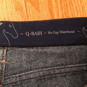 5 Pocket, zip fly, straight cut, mid rise with Q Baby no gap waistband