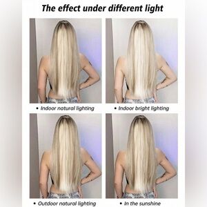 Gorgeous Wig, Synthetic High Qualit fiber, Human hair appearance, dark roots, with light blonde with highlights, doesn’t look shiny on the sun light