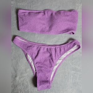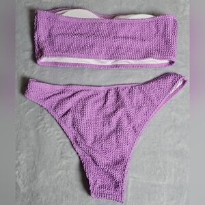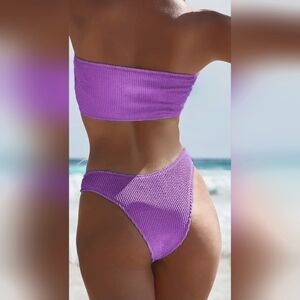New Lavender Large Bandeau Strapless Rib Textured High Cut Bikini Set NWOT