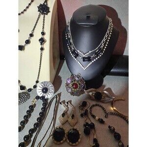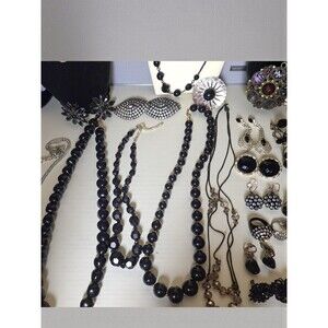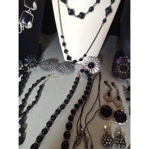 30 Pc Vintage Black Jewelry Lot Sarah Coventry Pin Goth Glam Necklace Reseller