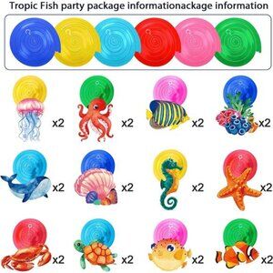🧿Size details: the size of the tropical fish party cutout card is approx. 7.09 x 7.09 inches; Each swirl can extend to approx. 30 - 38 inches in length, proper size to decorate the party well and create a wonderful scene