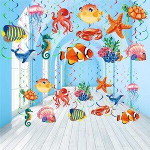 30 Pcs Tropical Fish Hanging Swirls Under the Sea Party Decorations