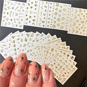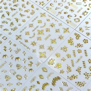 30 Sheets Gold Nail Art Stickers Gold Flower Butterfly Nail Stickers Star Line