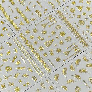Specification:Quantity: 30 sheetsStyle: 3D Self-Adhesive Gold Adhesive transfer designer foil sliderColor: GoldPattern:Lace,Heart,Leaves,Flower,Butterfly,Line,StarFeature:Suitable for all seasons Spring Summer Autumn Winter.Suitable to use on top of nail polish, UV gel polish, acrylic, etc.Easy to apply on natural or artificial nails.Suitable for home use or
