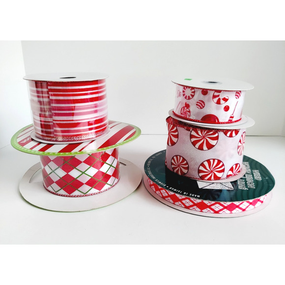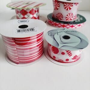 30+ Yards Variety Lot Wire Edged Ribbon Red White Christmas Gift Crafts Candy