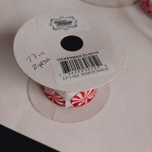 * One New Unopened Spool is Red & White Striped Design and is marked 2.5" Wide 10 Yards, Vickerman;