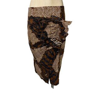 30% off! Anthropologie Skirt women's 6 brown black patterned pencil skirt ruffle