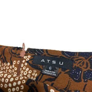 Anthropologie ATSU skirt brown black white floral pencil skirt with slit in front, ruffle accent, back zipper