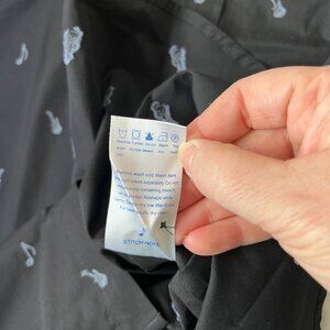 30% off! Stitch Note men's shirt M black blue guitar print short sleeve button d
