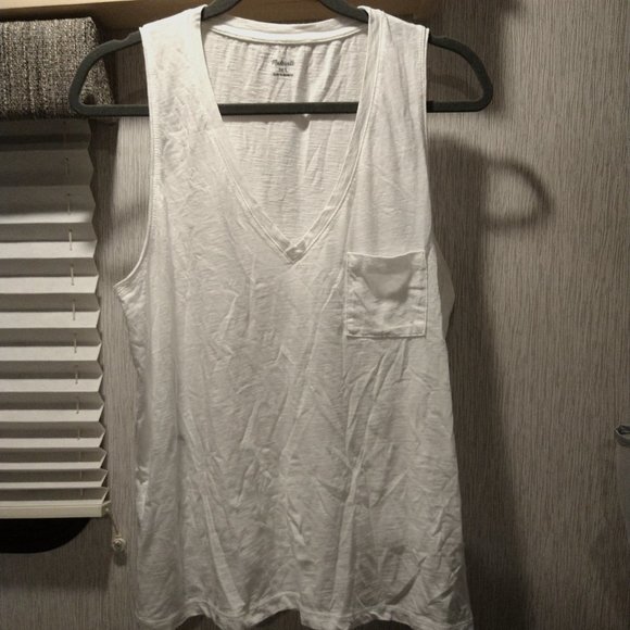 MADEWELL white v-neck sleeveless tee/ tank L. 100% cotton