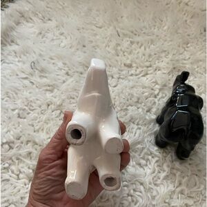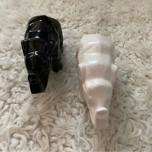 30% off w ♥️ Pair Elephant White Black Ceramic Hexagonal Cubist Figurines Flaw