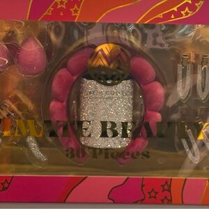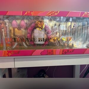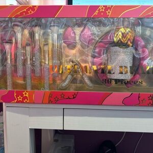 Beautiful and brand new ultimate rhinestone brush set that has never been opened and ready to be used or gifted for Christmas! All pieces are included, one barrette is moved from original place due too movement of the box but rest assured the box has not been opened or used! Thank youu for looking if you have any questions please feel to comment below!